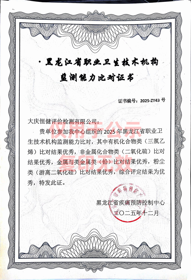 2025年黑龍江省職業(yè)衛(wèi)生技術(shù)機(jī)構(gòu)監(jiān)測能力比對證書